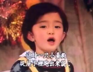 此前网友微博发视频,是杨幂小时候讲故事的视频,小杨幂在里面讲故事,纯正的北京腔。视频上的字幕:强片介绍,北京腔,儿童教学带。这个视频非常有可能是当时的录像带的年代里录的。