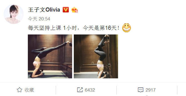 凤凰网娱乐讯 7月19日晚,王子文在微博又晒出一组高难度的瑜伽动作,让看到的人再度惊呆了。
