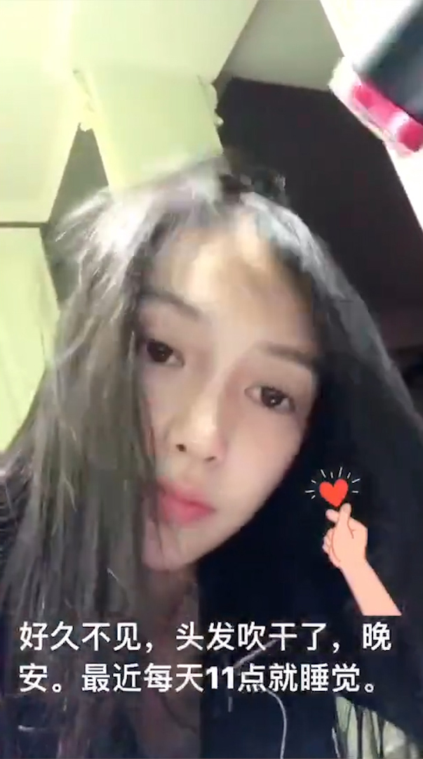 视频中的baby以睡前的素颜形象出镜,但依然非常美丽。