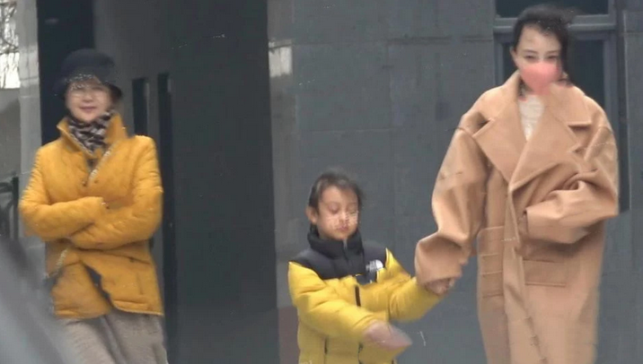李小璐与母亲接甜馨放学 遇强风用手护女儿