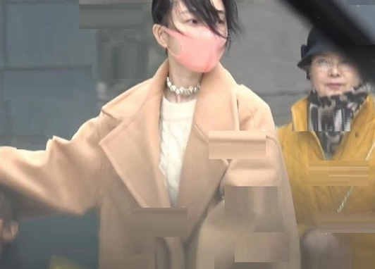 李小璐与母亲接甜馨放学 遇强风用手护女儿